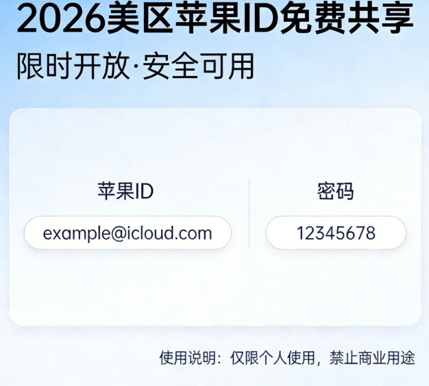 一、最新免费共享美区苹果ID(实时可用)