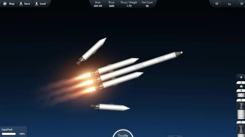 成功进入太空后,等待你的是一个按真实比例还原的太阳系,没有空气墙,没有边界限制,只要你的技术和规划到位,就能去往任何你能看到的天体。你可以驾驶飞船环绕地球飞行,俯瞰蓝色星球的轮廓;可以精准着陆月球,留下属于自己的足迹,重现阿波罗登月的经典时刻;也可以挑战在火星稀薄的大气下实现软着陆,探索这颗红色星球的神秘地貌;甚至可以一路远行,探访水星、金星、木星等遥远的行星,感受宇宙的浩瀚与神奇。更令人惊喜的是,游戏支持飞船回收功能,你可以尝试模仿SpaceX的火箭回收技术,让助推器精准着陆,实现资源的重复利用,进一步提升了游戏的趣味性和挑战性。