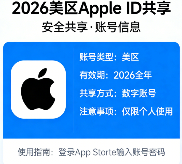在2026年,许多用户希望通过美区Apple ID下载ChatGPT、TikTok等海外专属应用,但共享Apple ID存在一定安全风险,若操作不当可能导致账号被盗、个人信息泄露、设备被锁定等问题。本指南将详细拆解美区Apple ID共享使用的安全要点,以及安全下载海外应用的完整流程,帮助用户规避风险、合规使用。