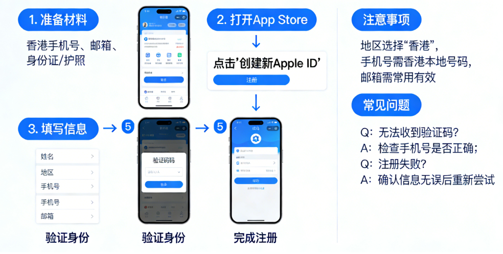 - 问题3:手机号无法验证:检查内地手机号是否正常接收短信,不要开启短信拦截