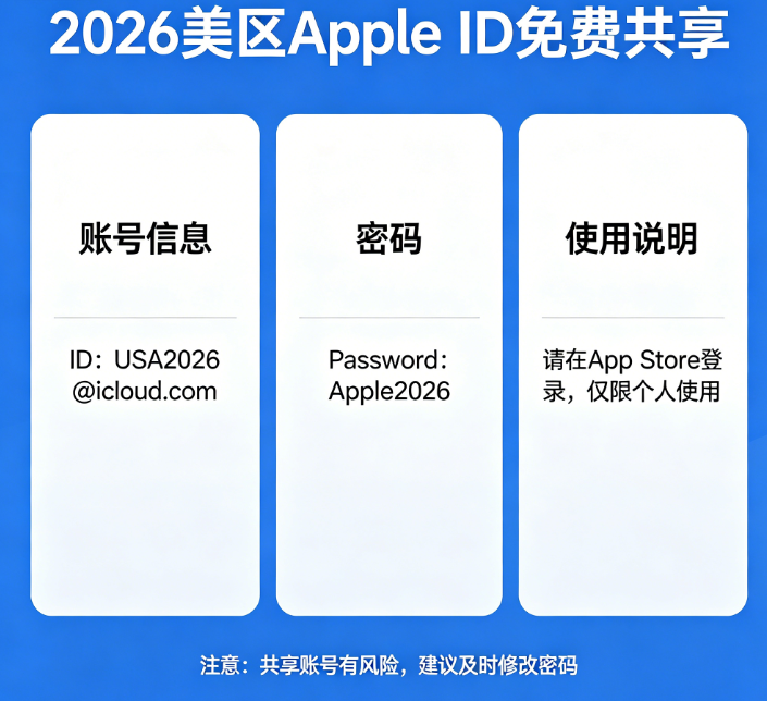 一、2026最新免费共享美区Apple ID(实时更新,失效速告)
