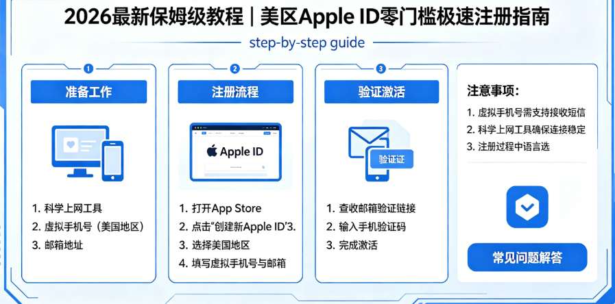 2026一次性成功注册美区苹果ID完整教程|零付款、不用海外手机号+美区必玩热门APP/游戏全攻略