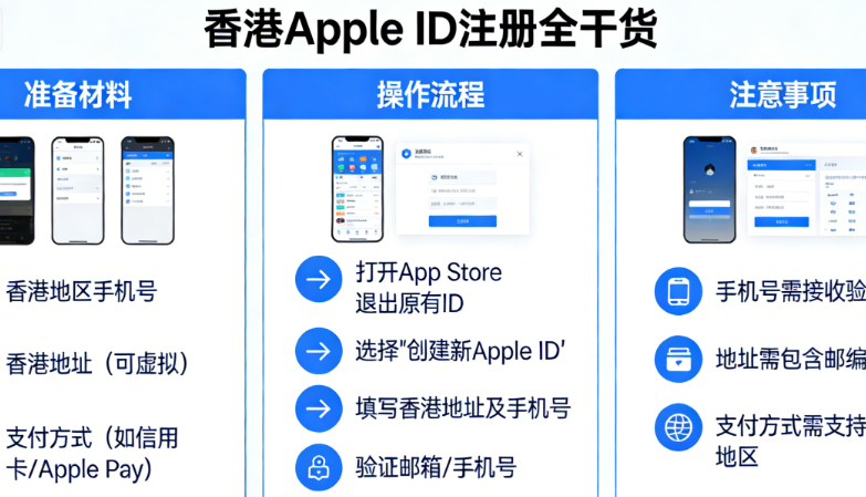 核心说明:本文专为小白打造,全程避开注册高频坑,详细拆解“注册→激活→APP下载→高阶玩法”全流程,无需香港手机号、无需香港信用卡,确保一次注册成功,轻松解锁香港区App Store专属资源。